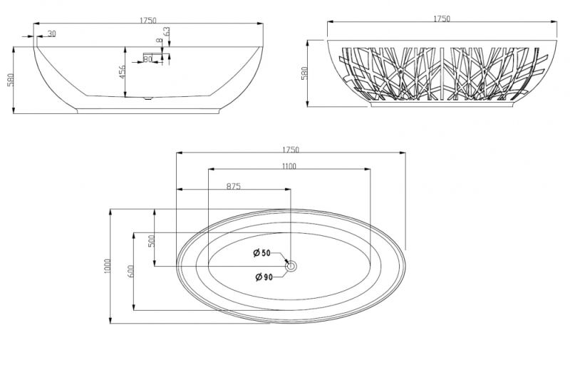 Акриловая ванна ABBER AB9283 175x100x58