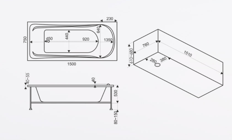 Состав поставки: Ванна, КаркасРазмеры