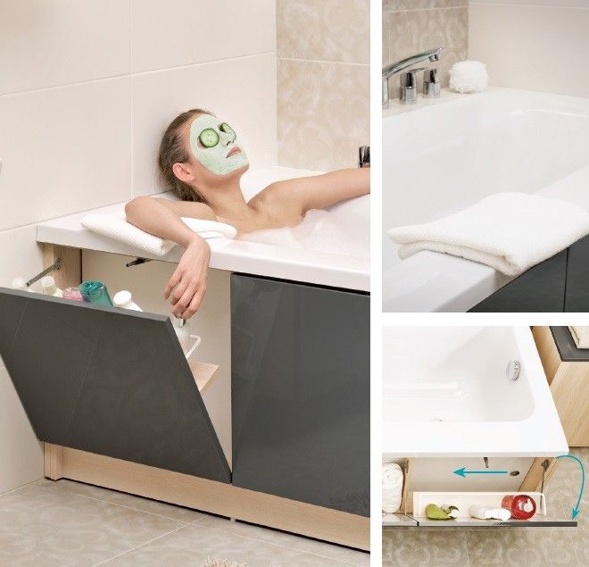 • Для каждой модели выпускается специально разработанная фронтальная панель с тремя скрытыми модульными шкафчиками. Новая система хранения – это инновационный подход к планированию пространства в ванной комнате. Именно такой подход к использованию пространства даст Вам возможность хранить максимум предметов в минимальном пространстве.