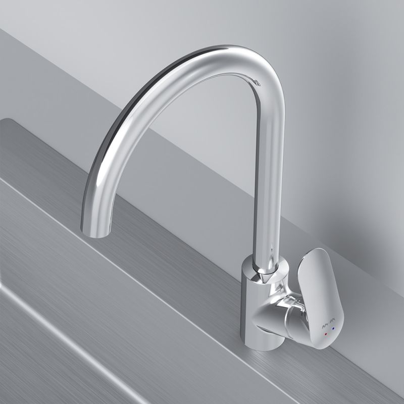 Впервые модный дизайнерский смеситель в доступном сегменте: ультрамодный стиль Dynamic Organic — природные формы в сочетании с четкими линиями, доведенными до совершенства человеком.Максимальный комфорт: плавное вращение поворотного излива в любом направлении обеспечивает непревзойденное удовольствие от использования и удобство в работе на кухне.Эксклюзивная разработка: специально спроектированный для АМ.РМ керамический картридж SoftMotion 35 мм обеспечивает оптимальную регулировку температуры, а также позволяет выдерживать любые перепады давления. Разработан с учетом ваших потребностей и особенностей различных пространств. Высокий излив смесителя Like идеально подойдет для любой раковины поможет вам с легкостью справится с такими задачами, как наполнение больших емкостей.Забота о безопасности: изготовлен из экологичной и безопасной латуни с пониженным содержанием свинца. Надежность на 700%, протестирован на 500 000 циклов включения, что в 7 раз превышает европейские стандарты.