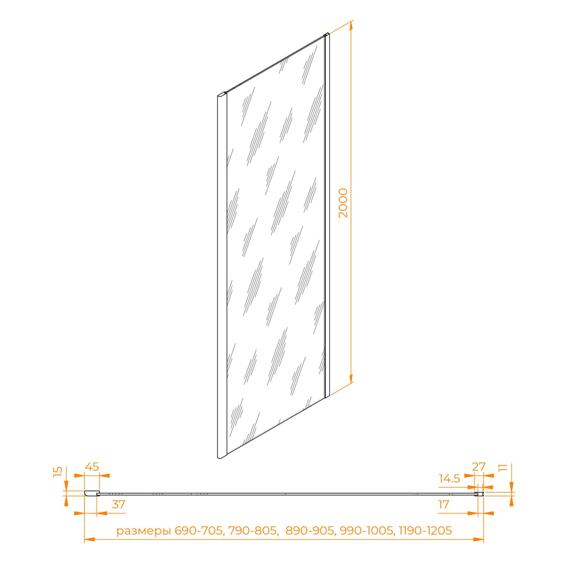 Комплектуется с моделями высотой 2000 мм и цветом профиля «хром». Подходит к моделя... Подробнее