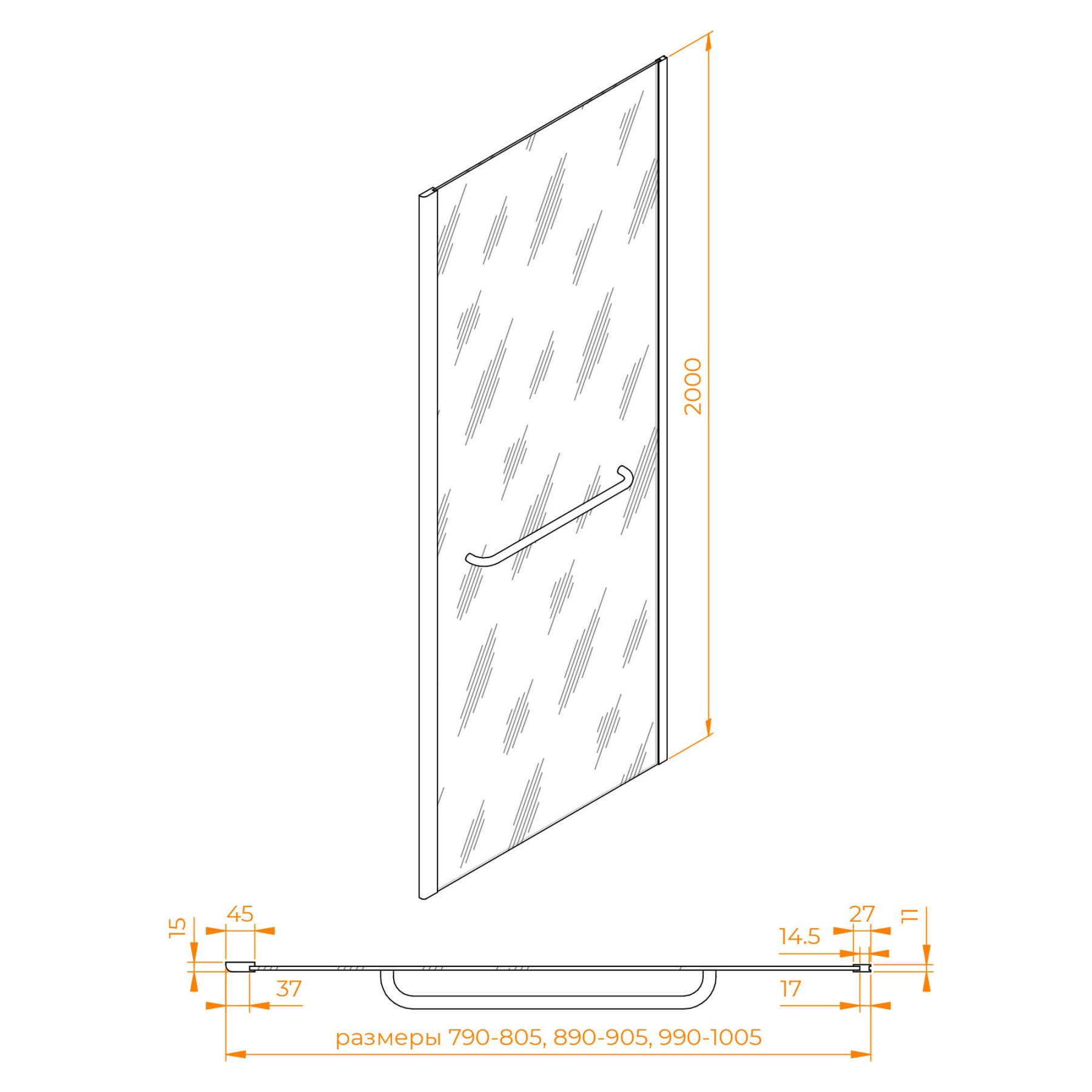 Комплектуется с моделями высотой 2000 мм и цветом профиля «хром». Подходит к моделя... Подробнее