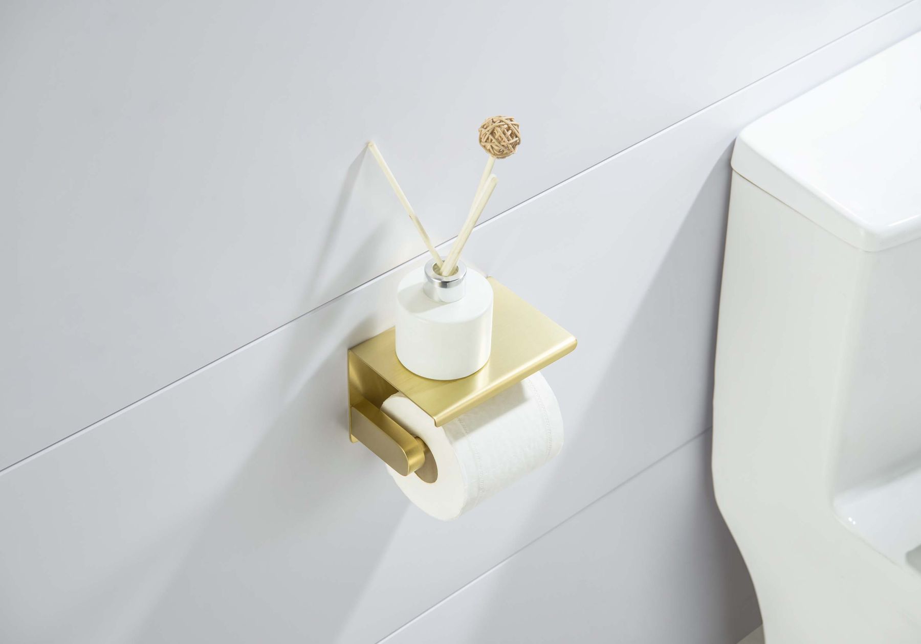 Бумагодержатель с полкой Aquatek Европа AQ4939BG шлифованное золото
