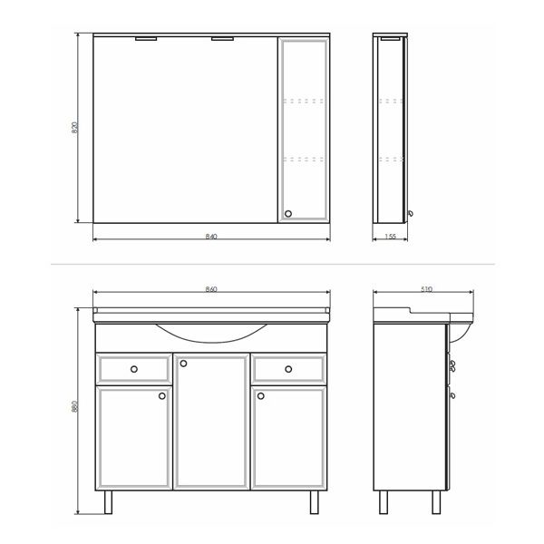 Название: Зеркало шкаф Артикул: Сочи 85 Варианты цвета рамы: Белый глянец Габариты (ШхВхГ): 840*... Подробнее