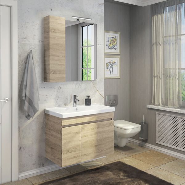 Название: Зеркало шкаф Артикул: Тромсе 80 Варианты цвета корпуса и фасада: Дуб Сонома Материал: ... Подробнее