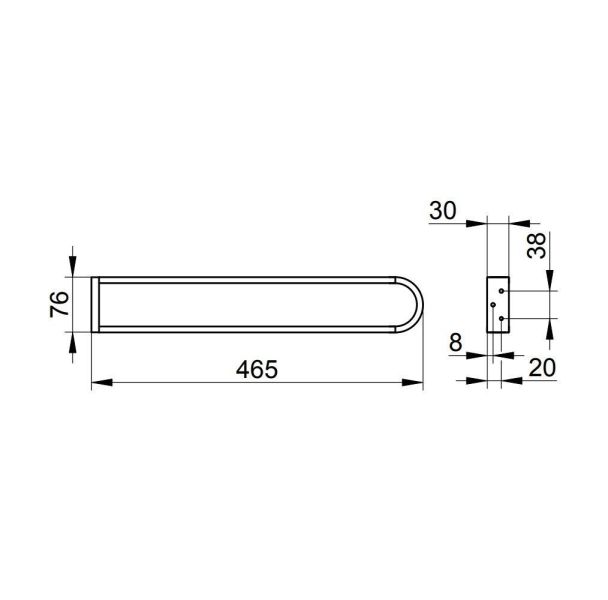 KEUCO Edition 300 30018 010000 - Держатель для полотенца | скоба, металлический, хромированное покрытие. Размеры: ширина 76 мм, глубина 465 мм, высота 30 мм.