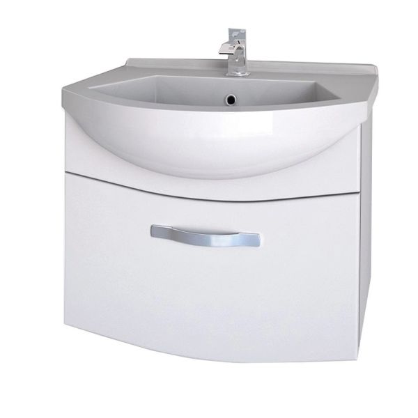 Подвесная коллекция со скругленными линиями фасада в 4-х размерах 55, 65, 75, 90 Лаконичный дизайн, глянцевая поверхность фасада, механизмы Hettich. Небольшая глубина тумбы органично впишется в любую, даже небольшую ванную комнату. Глубокий ящик