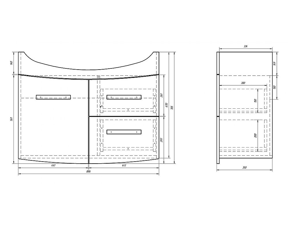 Подвесная коллекция со скругленными линиями фасада в 4-х размерах 55, 65, 75, 90 Лаконичный дизайн, глянцевая поверхность фасада, механизмы Hettich. Небольшая глубина тумбы органично впишется в любую, даже небольшую ванную комнату. Глубокий ящик