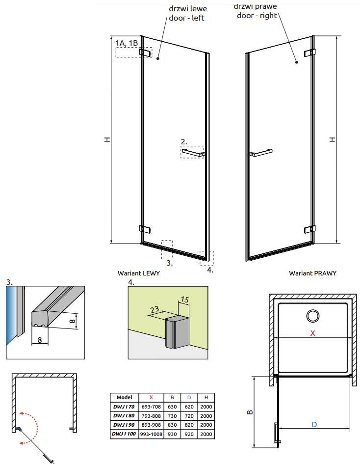 • створки двери можно заказать либо в двух идентичных размерах, либо в двух разных размерах, если это необходимо