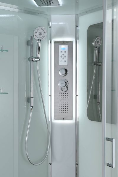 Стильная душевая кабина AvaCan сочетает в себе высокую функциональность, практичность и надежность. При изготовлении применяется безопасное закаленное стекло, надежно фиксируемое алюминиевым профилем.Профиль сделан из алюминия повышенной прочности. Сборка без силикона (увеличивает срок службы, защищает от протечек), внутренняя сборка (облегчает установку и ревизию; позволяет установить в ограниченном пространстве и обойтись без демонтажа других сантехнических приборов), смеситель резьбовой (без хомутов). Съемный экран поддона (позволяет осуществлять подключение и ревизию сифона).Двойные металлические ролики дверей (распределение нагрузки на два ролика, увеличивают срок службы). Душевая штанга(позволяет регулировать по высоте ручную лейку), ручная арома-лейка с витамином С (картридж в комплекте,есть возможность замены или удаления картриджа), полочки(из стекла, с ограничителем), сифон с гидрозатвором, сенсорный пульт управления с функциями: блютуз, LED подсветка, радио, вытяжка, гидромассаж спины, тропический (верхний) душ.