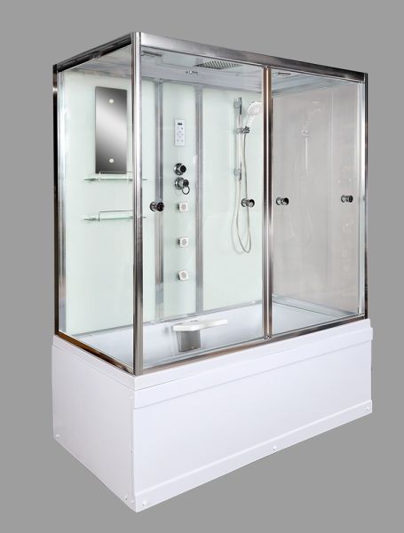 Стильная душевая кабина с внутренней сборкой AvaCan V150 сочетает в себе высокую функциональность, практичность и надежность. Для изготовления применяют безопасное закаленное стекло толщиной 5 мм, надежно фиксируемое алюминиевым профилем. Цвет профиля хром. В комплекте зеркало, сенсорный пульт управления, гидромассажные форсунки, смеситель, переключатель режимов, вентиляция, радио.