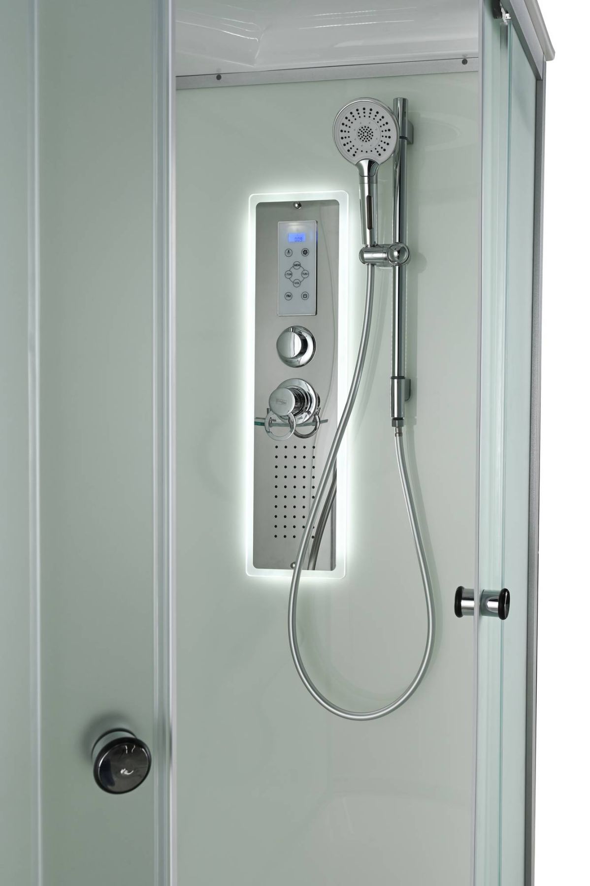 Стильная душевая кабина AvaCan D 3012R LED сочетает в себе высокую функциональность, практичность и надежность. При изготовлении применяется безопасное закаленное стекло толщиной 4 мм (матовое), надежно фиксируемое алюминиевым профилем. Сборка без силикона (увеличивает срок службы), внутренняя сборка(облегчает установку и ревизию; позволяет установить в ограниченном пространстве), смеситель резьбовой (без хомутов). Съемный экран поддона (позволяет осуществлять ревизию сифона). Цвет профиля матовый хром. Двойные металлические ролики дверей (увеличивают срок службы).В комплекте : душевая штанга, полочка, тропический (верхний) душ, арома-лейка с витамином С (картридж съемный), сенсорный пульт (блютуз, радио, LED подсветка в крыше и в центральной панели, вентелятор.)
