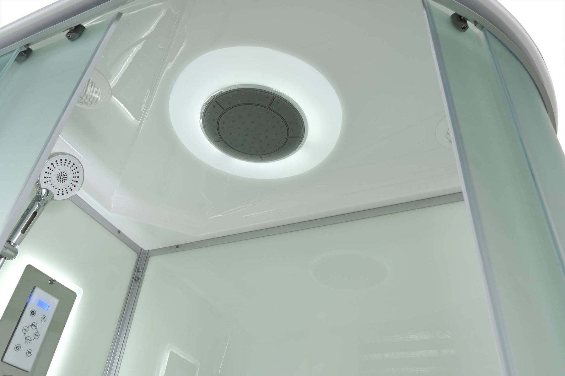 Стильная душевая кабина AvaCan D5012L LED сочетает в себе высокую функциональность, практичность и надежность. При изготовлении применяется безопасное закаленное стекло толщиной 4 мм (матовое), надежно фиксируемое алюминиевым профилем. Сборка без силикона (увеличивает срок службы), внутренняя сборка(облегчает установку и ревизию; позволяет установить в ограниченном пространстве), смеситель резьбовой (без хомутов). Съемный экран поддона (позволяет осуществлять ревизию сифона). Цвет профиля матовый хром. Двойные металлические ролики дверей (увеличивают срок службы).В комплекте : душевая штанга, полочка, тропический (верхний) душ, арома-лейка с витамином С (картридж съемный), сенсорный пульт (блютуз, радио, LED подсветка в крыше и в центральной панели, вентелятор.)