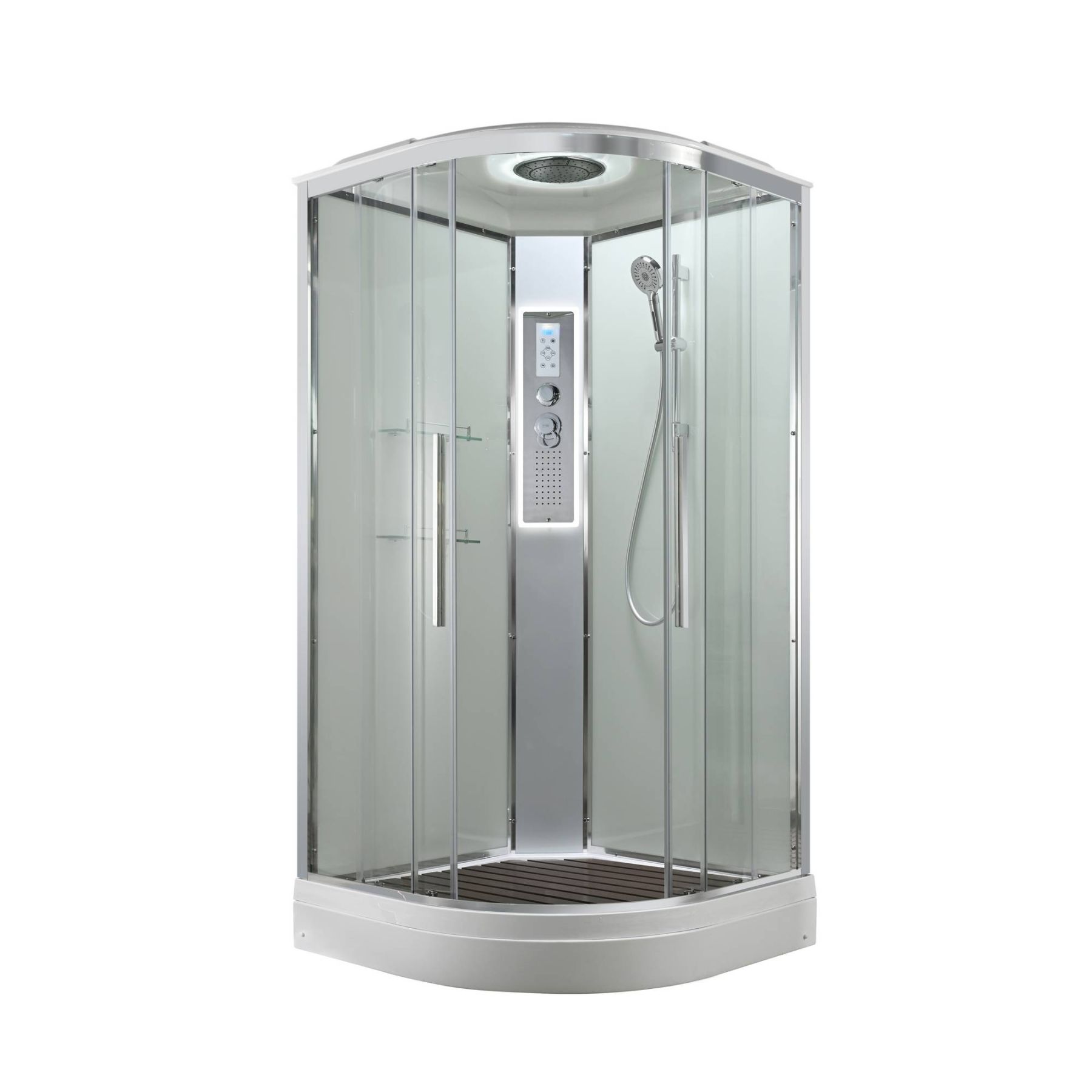 Стильная душевая кабина AvaCan EM2011LEDT сочетает в себе высокую функциональность, практичность и надежность. При изготовлении применяется безопасное закаленное стекло толщиной 5 мм (прозрачное), надежно фиксируемое алюминиевым профилем. Сборка без силикона (увеличивает срок службы), внутренняя сборка(облегчает установку и ревизию; позволяет установить в ограниченном пространстве), смеситель резьбовой (без хомутов). Съемный экран поддона (позволяет осуществлять ревизию сифона). Цвет профиля хром. Двойные металлические ролики дверей (увеличивают срок службы).В комплекте : душевая штанга, две полочки , тропический (верхний) душ, арома-лейка с витамином С (картридж съемный),полимерная вставка в поддон(имитация дерева),сифон, ручки дверей из нержавейки , двойные ролики ,пульт сенсорный(Блютуз ,LED подсветка ,радио ,вытяжка),гидромассаж спины.