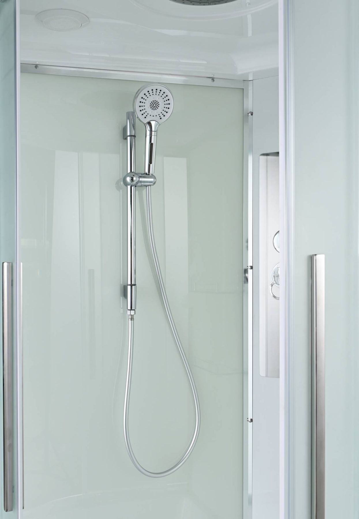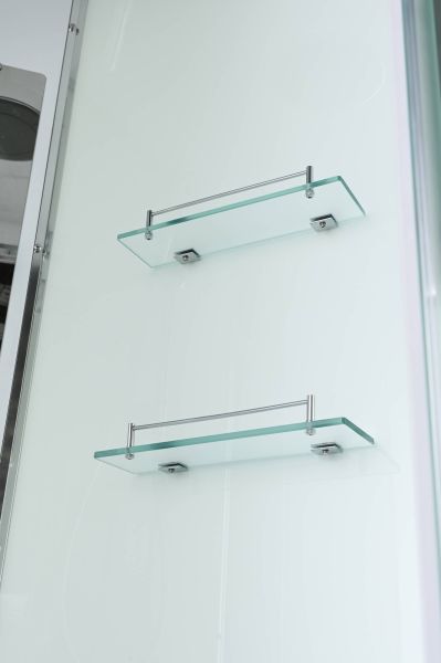 Стильная душевая кабина AvaCan EM2090 сочетает в себе высокую функциональность, практичность и надежность. При изготовлении применяется безопасное закаленное стекло толщиной 5 мм (матовое), надежно фиксируемое алюминиевым профилем. Сборка без силикона (увеличивает срок службы), внутренняя сборка(облегчает установку и ревизию; позволяет установить в ограниченном пространстве), смеситель резьбовой (без хомутов). Съемный экран поддона (позволяет осуществлять ревизию сифона). Цвет профиля  хром. Двойные металлические ролики дверей (увеличивают срок службы).В комплекте : душевая штанга, две полочки , тропический (верхний) душ, арома-лейка с витамином С (картридж съемный),полимерная вставка в поддон(имитация дерева),сифон, ручки дверей из нержавейки , двойные ролики .
