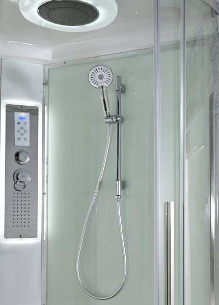 Стильная душевая кабина AvaCan EM2811LLEDT сочетает в себе высокую функциональность, практичность и надежность. При изготовлении применяется безопасное закаленное стекло толщиной 5 мм (прозрачное), надежно фиксируемое алюминиевым профилем. Сборка без силикона (увеличивает срок службы), внутренняя сборка(облегчает установку и ревизию; позволяет установить в ограниченном пространстве), смеситель резьбовой (без хомутов). Съемный экран поддона (позволяет осуществлять ревизию сифона). Цвет профиля  хром. Двойные металлические ролики дверей (увеличивают срок службы).В комплекте : душевая штанга, две полочки , тропический (верхний) душ, арома-лейка с витамином С (картридж съемный),полимерная вставка в поддон(имитация дерева),сифон, ручки дверей из нержавейки , двойные ролики ,пульт сенсорный(Блютуз ,LED подсветка ,радио ,вытяжка),гидромассаж спины.