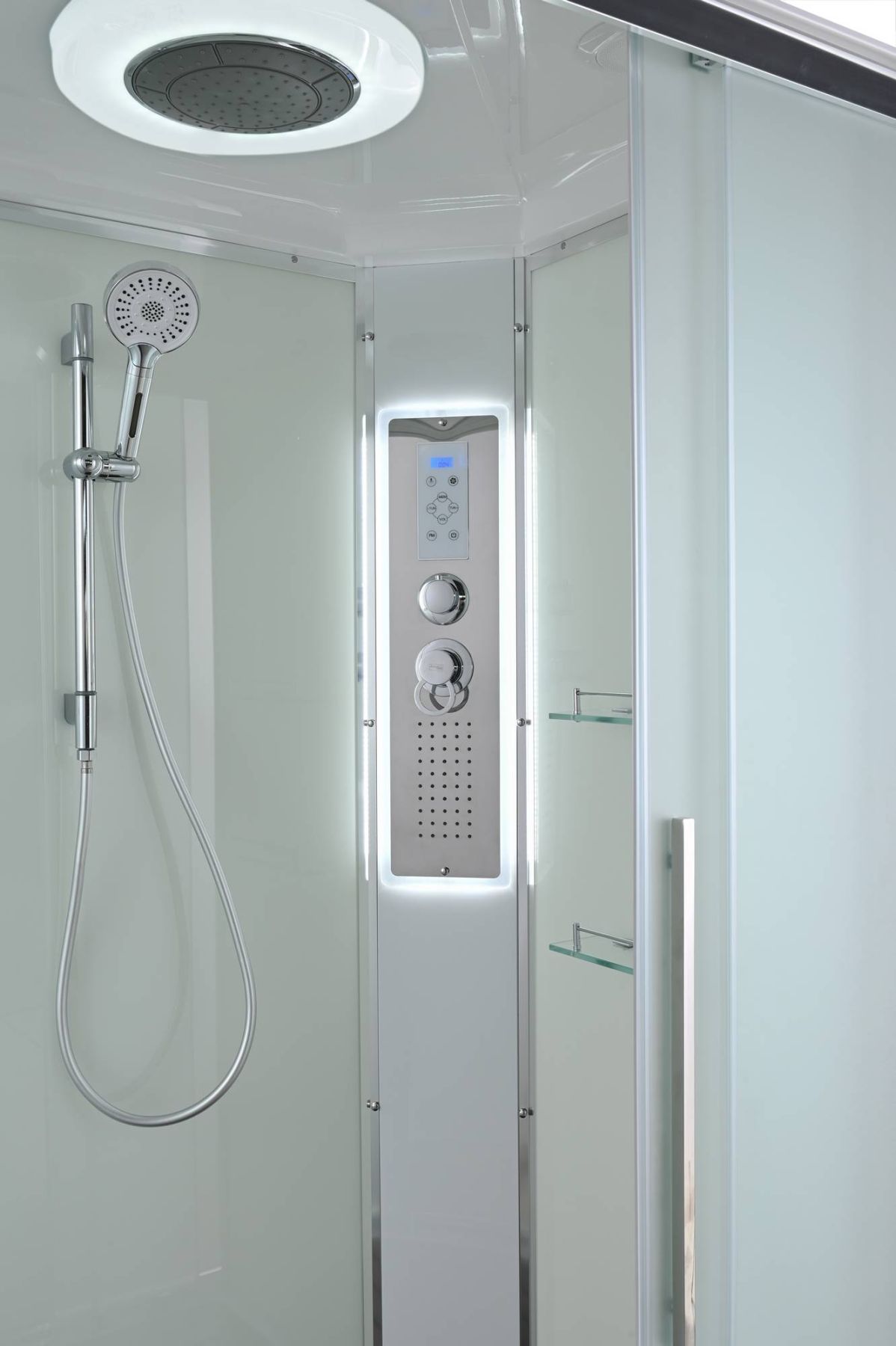 Стильная душевая кабина AvaCan EM2811RLED сочетает в себе высокую функциональность, практичность и надежность. При изготовлении применяется безопасное закаленное стекло толщиной 5 мм (матовое), надежно фиксируемое алюминиевым профилем. Сборка без силикона (увеличивает срок службы), внутренняя сборка(облегчает установку и ревизию; позволяет установить в ограниченном пространстве), смеситель резьбовой (без хомутов). Съемный экран поддона (позволяет осуществлять ревизию сифона). Цвет профиля хром. Двойные металлические ролики дверей (увеличивают срок службы).В комплекте : душевая штанга, две полочки , тропический (верхний) душ, арома-лейка с витамином С (картридж съемный),полимерная вставка в поддон(имитация дерева),сифон, ручки дверей из нержавейки , двойные ролики ,пульт сенсорный(Блютуз ,LED подсветка ,радио ,вытяжка),гидромассаж спины.