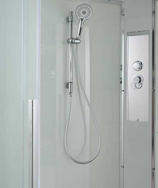 Стильная душевая кабина AvaCan сочетает в себе высокую функциональность, практичность и надежность. При изготовлении применяется безопасное закаленное стекло, надежно фиксируемое алюминиевым профилем. Профиль сделан из алюминия повышенной прочности. Сборка без силикона (увеличивает срок службы, защищает от протечек), внутренняя сборка (облегчает установку и ревизию; позволяет установить в ограниченном пространстве и обойтись без демонтажа других сантехнических приборов), смеситель резьбовой (без хомутов). Съемный экран поддона (позволяет осуществлять подключение и ревизию сифона).Двойные металлические ролики дверей (распределение нагрузки на два ролика, увеличивают срок службы). Душевая штанга(позволяет регулировать по высоте ручную лейку), ручная арома-лейка с витамином С (картридж в комплекте,есть возможность замены или удаления картриджа), полочки(из стекла, с ограничителем), сифон с гидрозатвором.