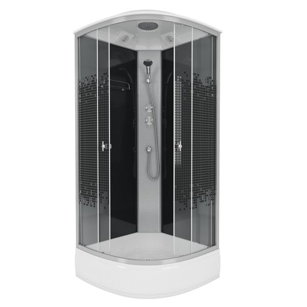 Душевая кабина Niagara Eco NG- 3504-14 BLACK идеально обеспечит не только комфортное проведение гигиенических процедур, но гармонично впишется в ваш интерьер. Душевую кабину просто установить, даже в компактную ванную комнату, при этом она элегантно впишется в любое интерьерное решение.Кабина Niagara Eco обладает формой четверти круга, шириной 90 см и глубиной 90 см, что сэкономит пространство для размещения других сантехнических предметов. Наличие крыши обеспечивает максимальную герметизации кабины, исключит излишнее попадание влаги на пол и стены. Средний пластиковый поддон у Niagara NG-3504-14 высотой 26 см оптимальное решение для любой ситуации. С узором исполнение стекол прекрасно подойдет в любой дизайнерский интерьер. Тропический верхний душ, создаст приятный эффект настоящего дождя. А встроенная система вентиляция устранит излишки влажности и создаст благоприятный микроклимат. Вход расположен спереди, что обязательно необходимо учесть при размещении кабины Niagara Eco.Китай, прослеживается во всех душевых кабинах Niagara. Они производятся со строгим соблюдением стандартов качества, и с использованием надежных, долговечных материалов. Душевая кабина Niagara Eco NG- 3504-14 BLACK внесет неповторимый вклад в дизайн-проект любой ванной комнаты, и сделает его не только практичным в плане функций, но и стильным с точки зрения эстетики.