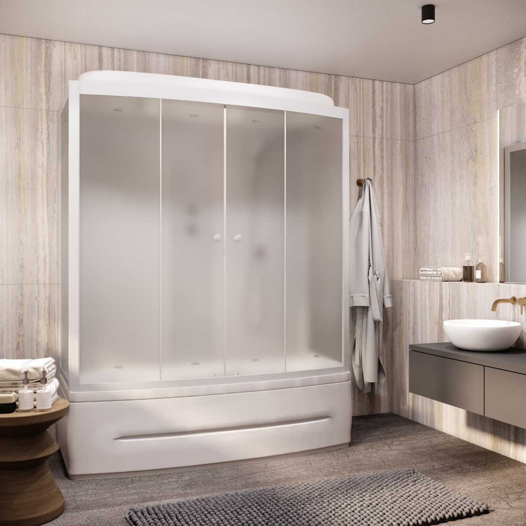 Бокс BNE170FR душевой PARLY (9337)Размер: 170х75х215 смБокс впишется в светлый и темный дизайн ванной комнаты. Внутри душевой зоны достаточно места, чтобы принимать душ вдвоем.Достоинства:Стекло: матовое закаленное, 4 мм. Сквозь полотно просматриваются только контуры фигуры. Матовое стекло не прихотливо в уходе и не требует частой чистки.Стенки: закаленное стекло белое, 4 мм.Профиль: матовый хромированный, алюминиевый. Профиль не боится высокой влажности и не подвержен коррозии.Поддон: высокий, прямоугольный. Поддон можно использовать в качестве ванночки для купания и замачивания вещей.Комплектация: верхний душ ТРОПИК, ручной душ, сифон, налив воды в поддон. Без пульта, без радио, без подсветки.