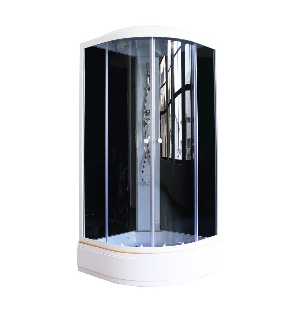 Душевая кабина ECM921Размер: 90х90х215 см.Особенности:Стекло: закаленное, противоосколочное, ударопрочное, тонированное, 4 мм.Стенки: закаленное, закаленное, противоосколочное, ударопрочное, черное.Профиль: белый, алюминиевый.Центральная панель белая.Поддон: средний, 26 см, полукруглый, с бортиком (система аквастоп). Материал - АБС пластик, армирован стекловолокном. Дополнительная ножка конструкции. Противоскользящее покрытие. Съёмный передний экран на защелках.Комплектация: смеситель, верхний душ ТРОПИК, ручной душ, сифон.Магнитные уплотнители двери под 45°.Соединение без болтовое. Дополнительные силиконовые уплотнители.Двери раздвижные, на роликах. Нижние ролики на клипсе с механизмом отстегивания. Силиконовые водоотсекатели.Монтаж без силиконаДушевая кабина отлично подходит для дачи и квартиры.Преимущества модели: экономия пространства, вместительность, безопасное стекло, плавное бесшумное открывание дверей, простая регулировка дверей, повышенная герметичность, легкий доступ к стеклу и профилю для очистки.Высота поддона 26 см - золотая середина !