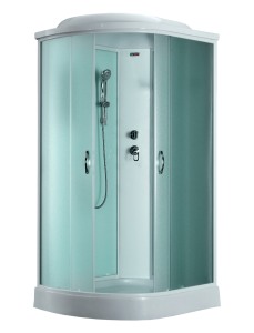 Полотна двери выполнены из матового стекла, а задняя стенка из прозрачного стекла. Это придает кабине элегантный и стильный вид, а также позволяет сохранить конфиденциальность. Профиль выполнен из алюминия белого цвета, что дает ему прекрасный вид и защищает от коррозии.