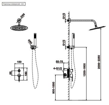 - Размер верхнего душа, см:25