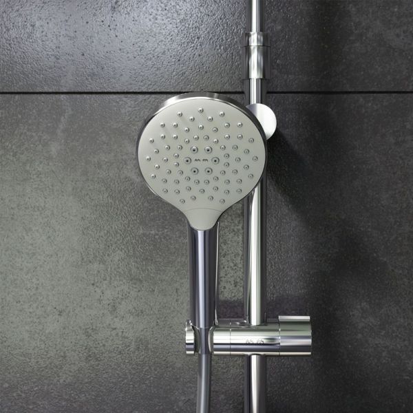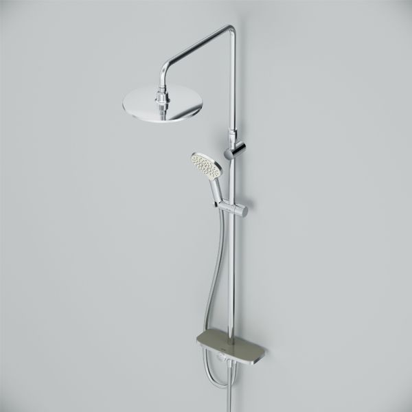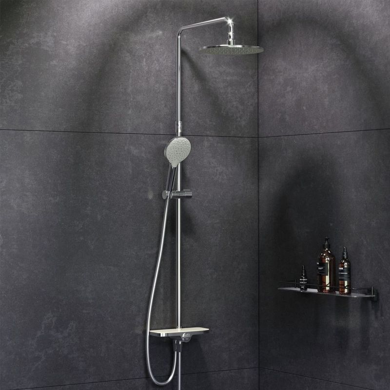 Тотальный дизайн в действии: все детали душевой системы – от пропорций ручного и верхнего душей до рисунка расположения форсунок на лейках.Премиальные размеры и продуманные детали: увеличенный диаметр душевых леек (верхний душ 254 мм и ручной душ 120 мм) позволит ощутить преимущества тропического душа, тогда как увеличенная длина шланга 1750 мм обеспечит свободу движений во время принятия душа. Телескопическая поворотная штанга регулируется по высоте в диапазоне от 1030 до 1460 мм, обеспечивая комфорт для людей любого роста, а шаровой шарнир в держателе верхнего душа позволяет регулировать угол его наклона.Нижнее крепление штанги выполнено в виде полочки, а переключатель верхний-ручной душ является ее продолжением. Нажав на него, вы можете менять источник потока воды от ручной лейки к верхнему душу.