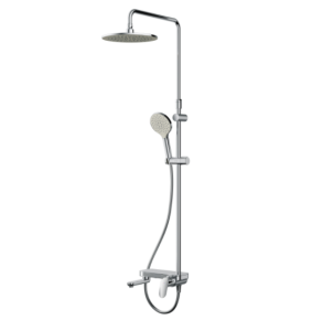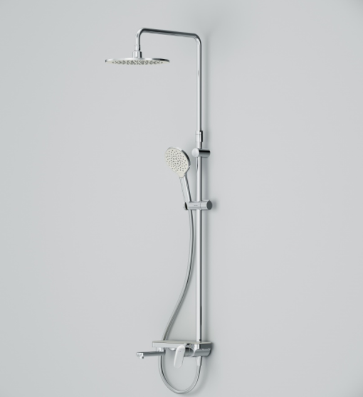 Тотальный дизайн в действии: все детали душевой системы – от пропорций ручного и верхнего душей до рисунка расположения форсунок на лейках.Премиальные размеры и продуманные детали: увеличенный диаметр душевых леек (верхний душ 254 мм и ручной душ 120 мм) позволит ощутить преимущества тропического душа, тогда как увеличенная длина шланга 1750 мм обеспечит свободу движений во время принятия душа. Телескопическая поворотная штанга регулируется по высоте в диапазоне от 1030 до 1460 мм, обеспечивая комфорт для людей любого роста, а шаровой шарнир в держателе верхнего душа позволяет регулировать угол его наклона.Смеситель выполнен в виде полочки. Чистый дизайн без лишних деталей: переключатель расположен за ручкой настройки температуры и позволяет менять источник потока воды от ручной лейки и излива до верхнего душа.