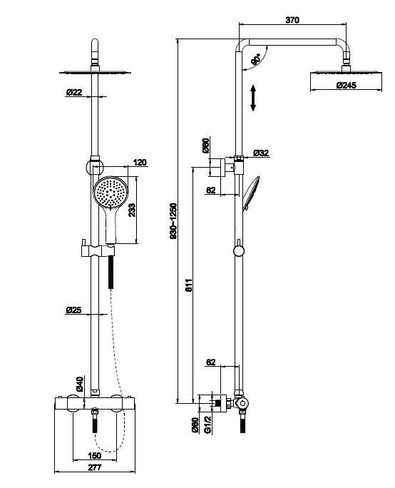 Длина шланга, см 150