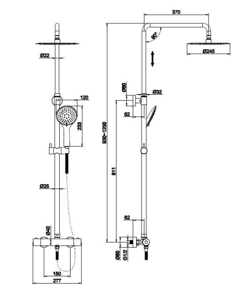 • Размер верхнего душа, см: