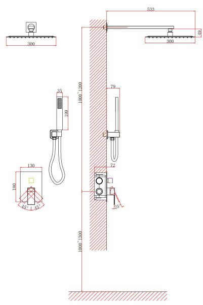 • Размер ручного душа, см: