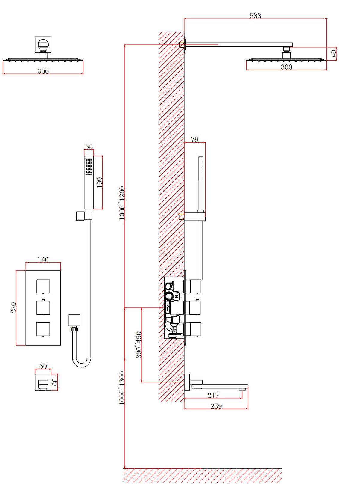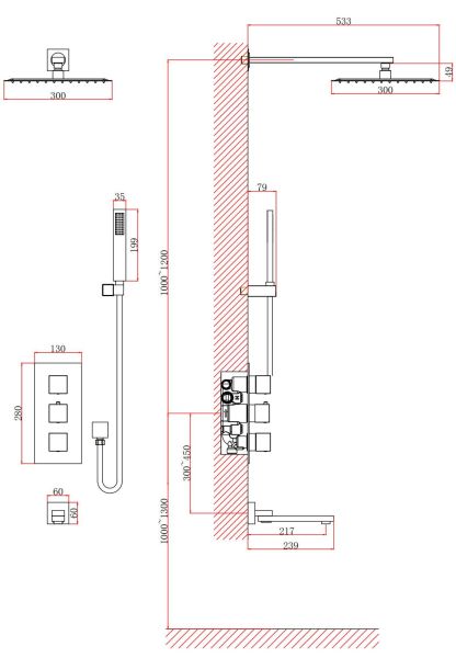 - Размер верхнего душа, см:30