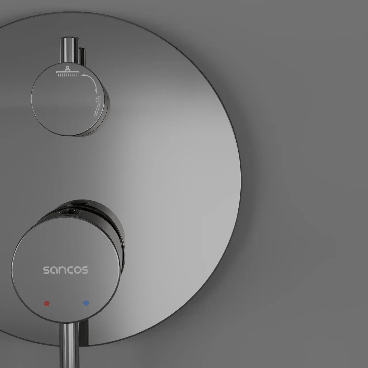Душевой комплект SANCOS Select встраиваемый для душа, с внутренней частью, верхним, ручным душем и шлангом в комплекте, цвет хром, арт. SC3003CH