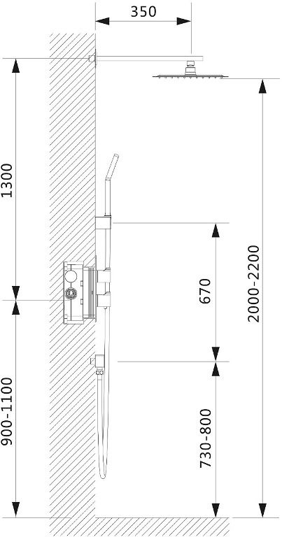 • Смеситель с монтажной коробкой, скрытого монтажа, с термостатом - 1 шт.