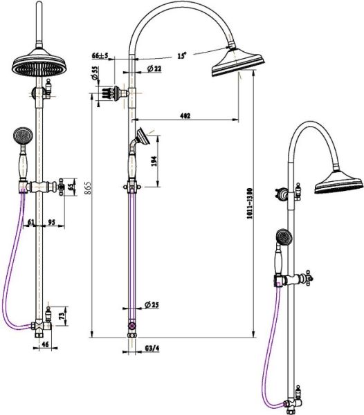 Душевая стойка Boheme Medici 401 несравненно дополнит вашу ванную комнату своим незаменимым функционалом. Душевые стойки Boheme отличная замена душевым системам скрытого монтажа, благодаря простоте установки и обслуживания. Благодаря оптимальному диаметру душевой лейки Medici в 7.7 см, вы получите полное наслаждение от принятия душа. Высота душевой штанги у Boheme Medici 130 см, позволит регулировать высоту размещения лейки в широком диапазоне. Душ Boheme 401 имеет 1 режим настройки потока струи. Boheme Medici 401 оснащен шлангом 150 см, это идеальная длина для комфортного использования. Диаметр верхнего (тропического) душа, которым оснащен 401 составляет 7.7 см.Душевая стойка Boheme Medici производится из высококачественных материалов (латунь), с отсутствием вредных примесей. Основной цвет исполнения Medici 401 – бронза, идеально подходящий к душевой зоне выполненной в стиле ретро. Бренд Boheme – Италия, все душевые системы произведены с использованием современных технологий. Душевая стойка Boheme Medici 401 правильное решение в оснащении ванной комнаты.