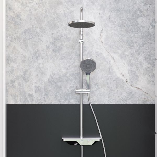 Душевая стойка Damixa Scandinavian Pure 947730000 ХромДушевая система из коллекции Apollo станет центром притяжения ванной комнаты. Плавные линии в сочетании с массивными формами создают исключительную коллаборацию стиля. Разумная экологичность: благодаря керамическому картриджу ColdStart, при включении смесителя автоматически запускается режим подачи холодной воды. Повышение температуры можно плавно регулировать поворотом правой ручки. Таким образом, расход горячей воды и энергии сокращается на 40%. Непревзойдённый комфорт и удобство: смеситель выполнен в виде компактной полочки из закаленного стекла, где вы можете хранить все необходимые вещи. Настоящее SPA прямо у вас дома: наслаждайтесь увеличенным размером тропической лейки с регулируемым углом наклона и 3-мя режимами ручного душа. Благодаря телескопической штанге с диапазоном регулировки в 400 мм водные процедуры будут одинаково комфортны абсолютно для всех членов семьи. Специальное PVD-покрытие гарантирует чрезвычайную прочность душевой системы, надежно защищая хромовое покрытие от механических повреждений, коррозии и потери цвета. Поддерживать чистоту стало еще проще благодаря функции очистки резиновых форсунок Rub&Clean.