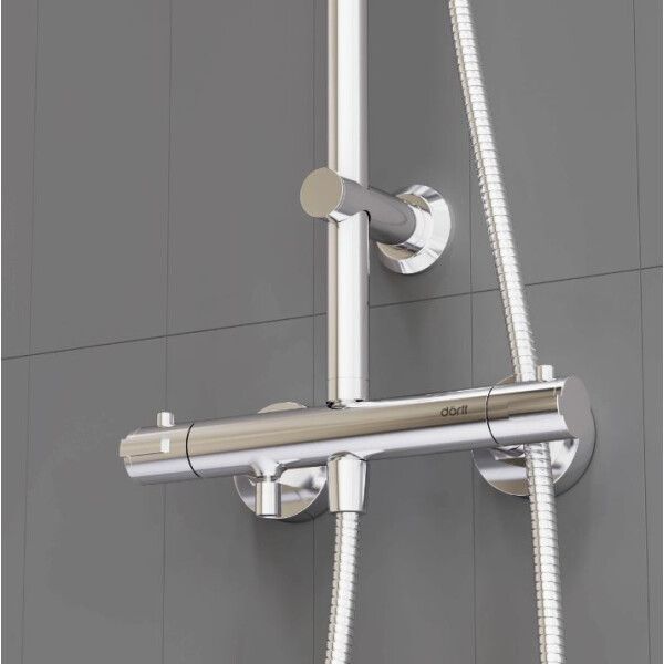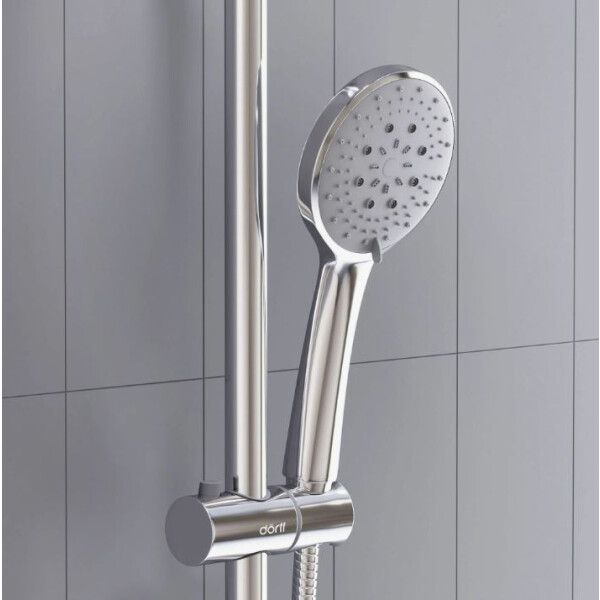 Душевая система Dorff New plus D0710500. Выгода в комплекте! Душевая система и смеситель для ванны и душа c термостатом по привлекательной цене. Душевая система Futura с тропическим душем, ручным душем с 3 функциями и длинным шлангом в 1500 мм - просто находка в своем сегменте. А стойки возможностью регулировки по высоте и шланги с защитой от перекручивания станут приятным бонусом для тех, кто ценит эргономичность и функциональность.Термостат душевых систем в элегантных современных размерах предотвратит от ожогов собрал в себе лучшие немецкие качества: стильный дизайн, компактные размеры, европейское качество, прочность и долговечность.Бренд Dorff