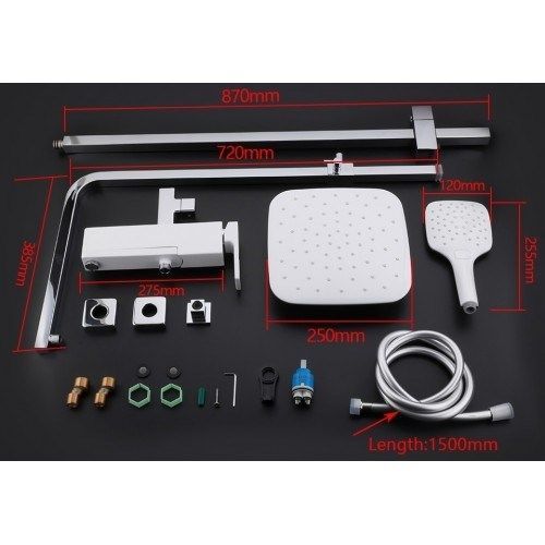 Душевая стойка Gappo G2417-8 выполнена из латуни, состоит из верхнего тропического душа, однорычажного смесителя с изливом, который является переключателем на лейку, ручной лейки с держателем и душевым шлангом (150 см). Душевая стойка легко очищается от известкового налета, а латунный корпус прослужит долгое время. Цвет - белый/хром.