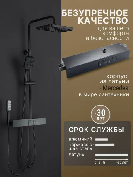 Душевой комплект содержит все необходимое для монтажа. Кроме того, наша душевая стойка с дисплеем и подсветкой имеет простой и быстрый монтаж, благодаря чему вы сможете установить ее самостоятельно без привлечения специалистов. Это позволит сэкономить время и деньги, а также получить удовольствие от процесса создания своего уютного уголка в ванной комнате.