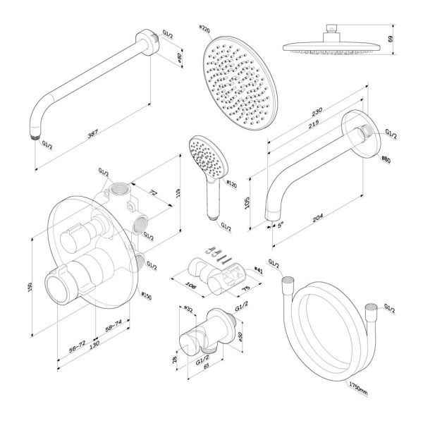 - Размер верхнего душа, см:22