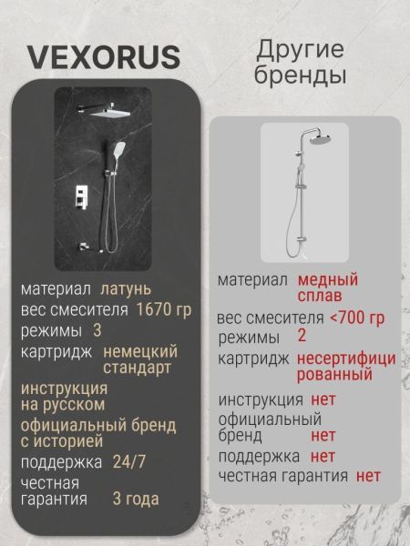 Душевая система с краном бренда Vexorus - это идеальный выбор для тех, кто ценит качество, стиль и комфорт. Представленное оборудование является надежным и долговечным, что позволяет использовать его на протяжении многих лет.