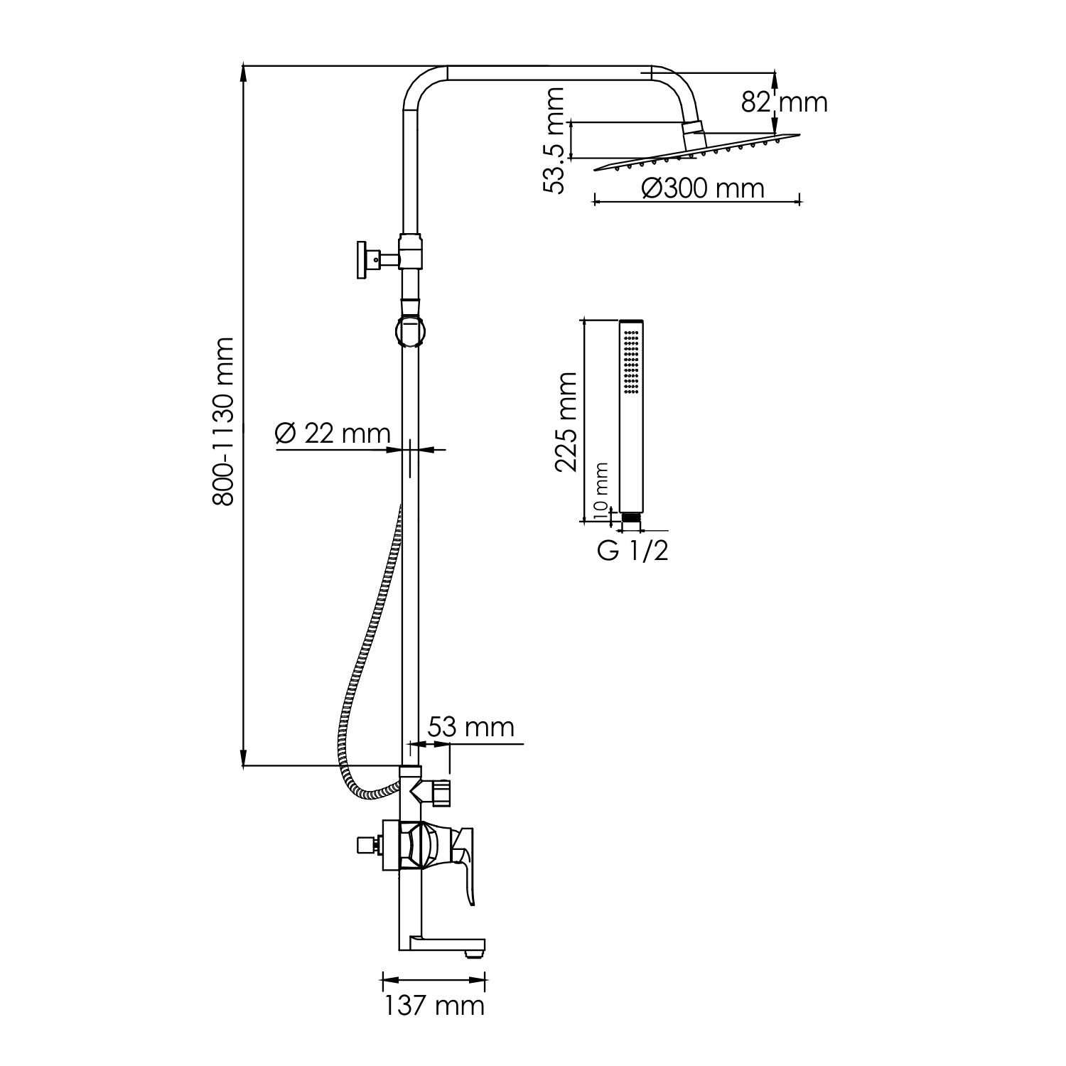Стойка для душа, Ø 22 мм регулируемая по высоте