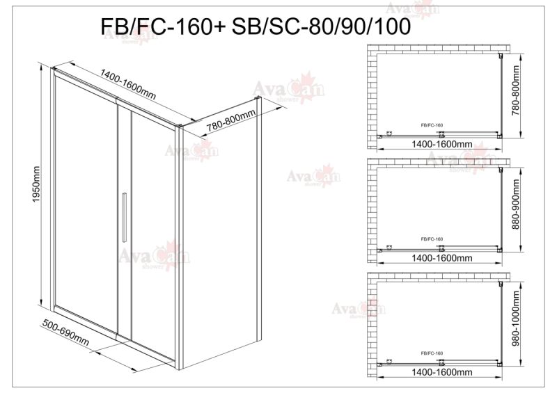 Душевой уголок AvaCan FB 140-160 + SB 80 чёрный
