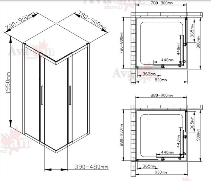 Душевой уголок AvaCan KB 80-90 MT чёрный