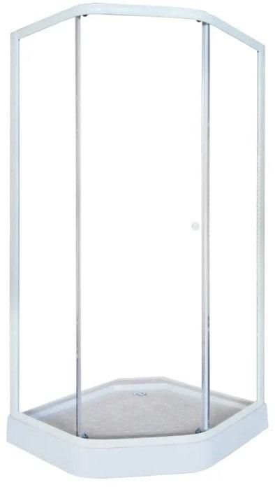Белый профиль и прозрачное стекло придают уголку визуальную невесомость. Благодаря универсальному дизайну, уголок не будет перетягивать на себя внимание от общей идеи оформления ванной. За счет трапециевидной формы модель занимает мало места, но внутри комфортно принимать душ.Достоинства: