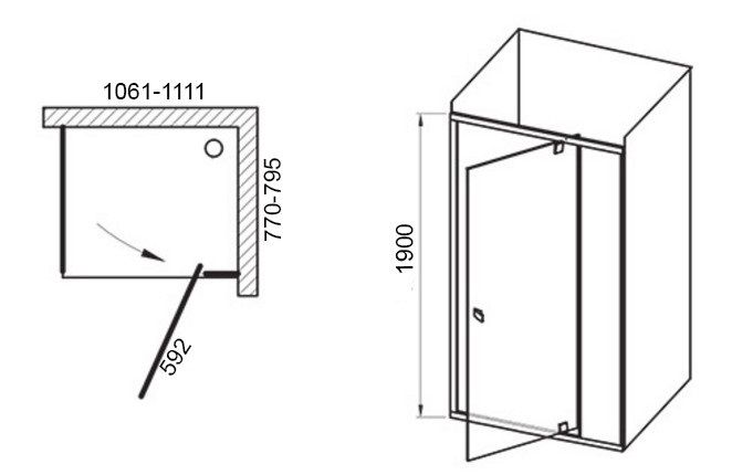 Душевой уголок Ravak PDOP2-110 + PPS-80 профиль сатин