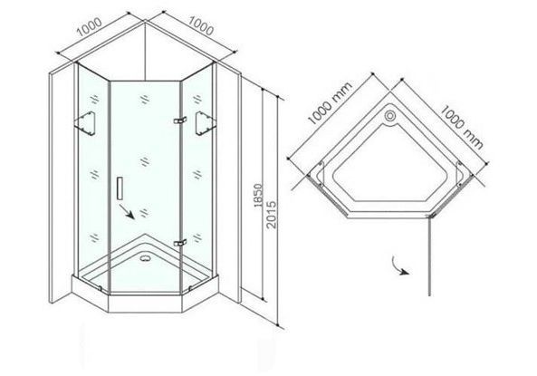 Душевое ограждение с поддоном, глянцевый серебристый алюминиевый профиль, латунная ручка, стекло толщиной 8 мм, петли и фурнитура нержавеющая сталь, покрытие хром. Петли с доводчиками.