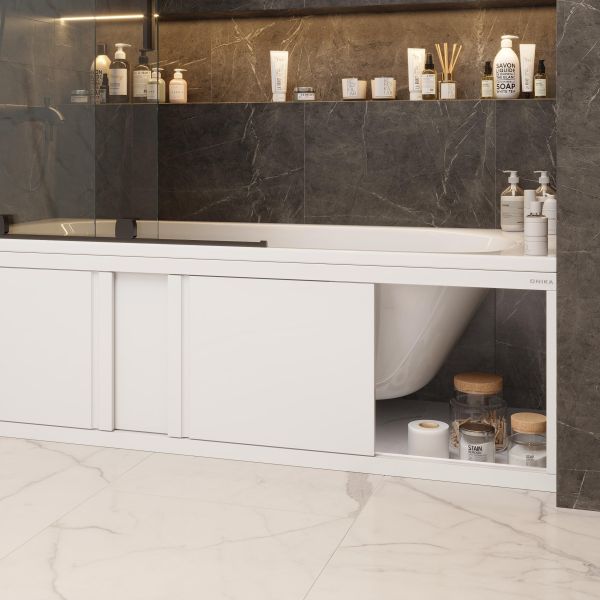 Универсальный экран под ванну 140 см Onika Одио скрывает все расположенные под ванной коммуникации и служит профилактикой скопления загрязнений под чашей ванны.
