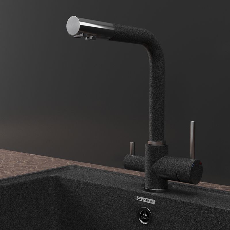 Смеситель 3611 изготовлен из высококачественной латуни и прослужит Вам долгие годы. Поверхность смесителя окрашена в цвета мраморных моек GranFest. Стильный и надёжный вариант прекрасно впишется в интерьер любой современной кухни. Смеситель оснащен: - краном с питьевой водой; - керамическим картриджем, диаметром 35 мм; - гибкой подводкой на 60см. Вращение излива позволит Вам удобно располагать его во время мойки посуды. в излив смесителя уже установлен аэратор, это экономит воду во время мытья, и сохраняет тишину.